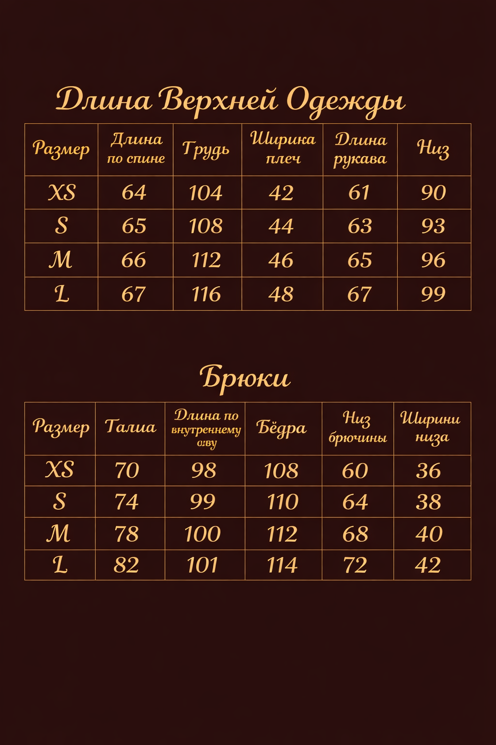 Внизу представлена таблица размеров, которая поможет вам точно определить подходящий размер перед оформлением заказ.